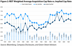 With acquisition cap rates now in the low-7s and blended costs generally in the low-6s for better-positioned platforms, spreads have normalized towards long-term levels as presented in Figure 2.